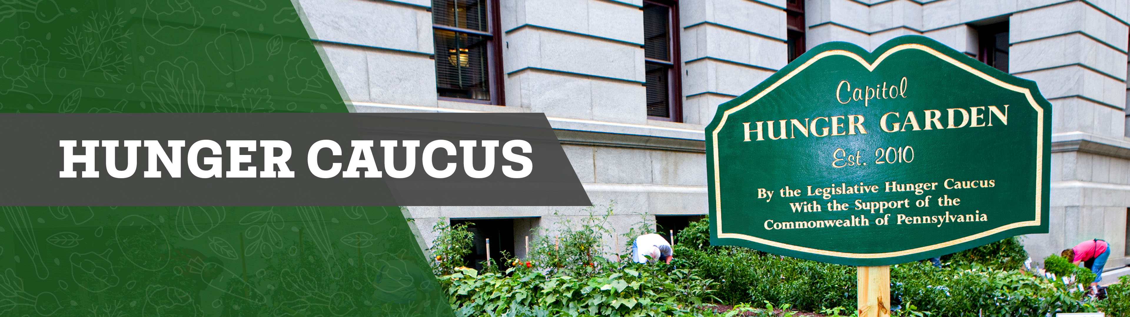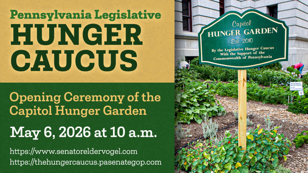 Since 2008, the Legislative Hunger Caucus has participated in outreach initiatives that have raised awareness for hunger. One of the more visible projects of the Caucus is the Capitol Hunger Garden. Located on the State Capitol grounds between the Main Capitol Building and the Ryan Office Building, the Capitol Hunger Garden first broke ground in 2010 with one, simple goal: to create a garden that would provide healthy food to help those in need and to serve as a valuable tool to raise awareness of hunger issues in Pennsylvania. Thirteen years later, hundreds of volunteers have come to the garden to harvest thousands of pounds of produce to feed many Pennsylvanians in need.